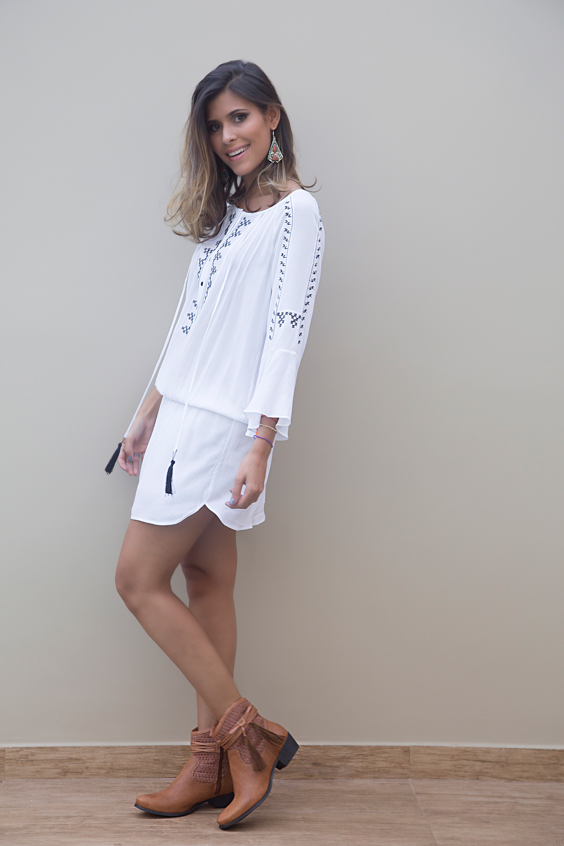 Fotografias para o blog Guia das Amigas (http://guiadasamigas.com/2016/03/18/meu-look-boho-chic) com os produtos das marcas Maria Josefina Joias Contemporâneas, Asha e Nanni Scarpe